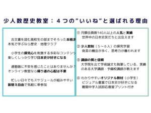 ・日本史の講師も世界史の講師も大学院で専門教育を受けて学界で論文を発表し、大学・大手予備校で教えている実績のある講師です。復習プリントは難関中学受験にも対応しています。